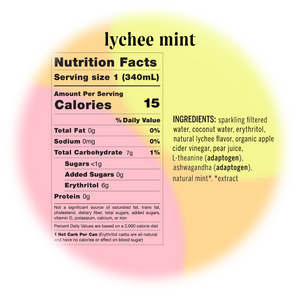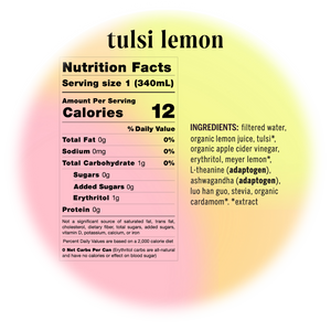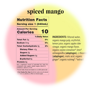 Current flavors: blueberry ginger, tulsi lemon, spiced mango, cherry hibiscus, lychee mint, and Lemon Turmeric.