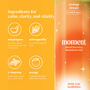 Orange dream blends bright citrus with dreamy calm. It’s the fizzy, feel-good soda you crave, but with zero added sugar and calming, mood-boosting botanicals. It's sparkling, feel-good, and totally crash-free.